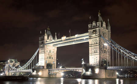 Tower Bridge in London at night, United Kingdom. Long exposure.