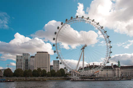 Coca-Cola London Eye observation wheel over Thames river offers high public viewing point of the city