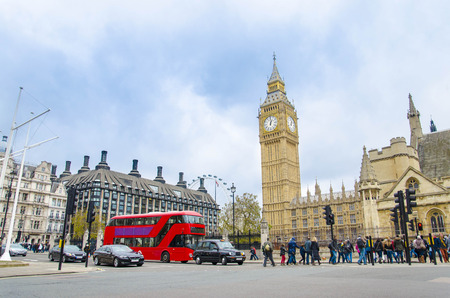 London, England - 21 March 2016: Big Ben and the Westminister bridge in central London.