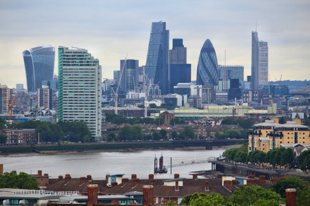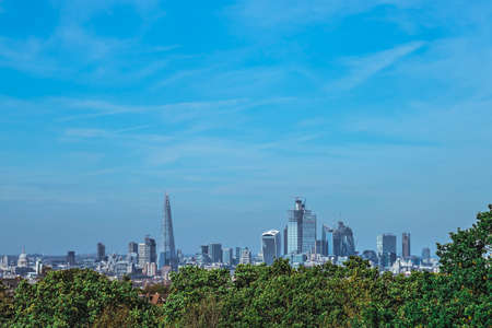 City of London skyline - capital city of the UK. Seen from Greenwich.