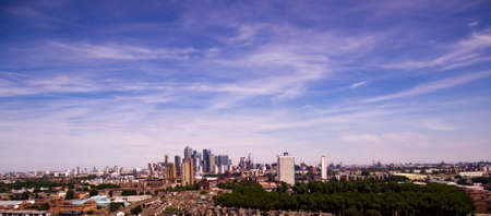 Canary Wharf panoramic view from Greenwich Park, London, United Kingdom