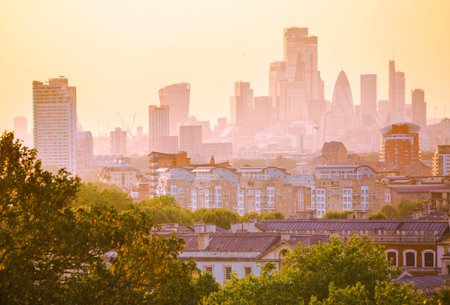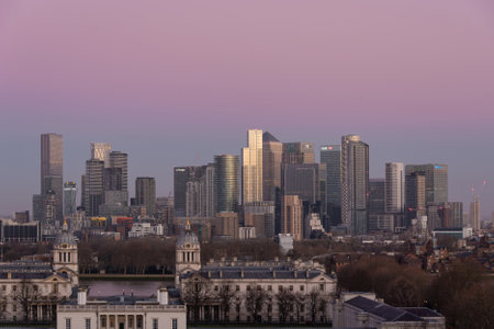 London, UK - 25 October, 2025: City of London at sunset including The Shard of Glass, view from the Greenwich hill.