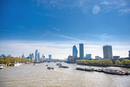 London, UK- February 6, 2017: View of London skyline and River Thames on a sunny day in London on February 6, 2017.