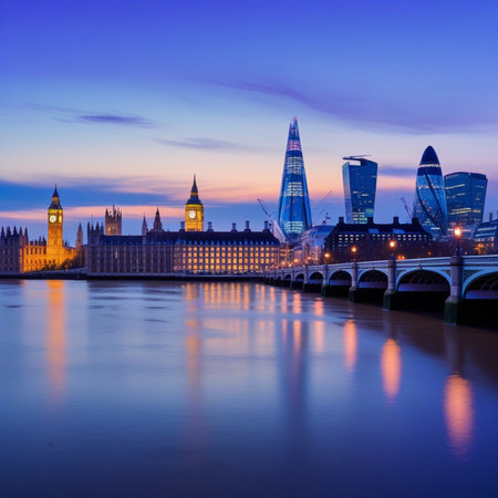 Aerial drone views of London's iconic skyline, blending historic and modern architecture..