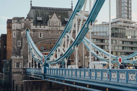 London, UK - August 25, 2020: People walking on Tower Bridge, a famous tourist attraction in London that is often mistaken for London Bridge, the next bridge upstream.