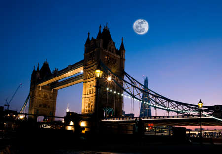 Full Moon over illuminated London Bridge