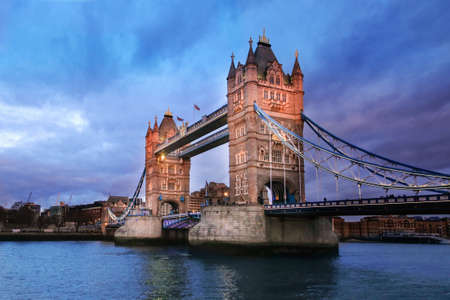 Tower Bridge in London at sunset. This is one of the oldest bridges and landmarks and a popular tourist attraction.