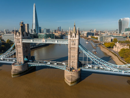 Aerial view of the Tower bridge in London, UK.