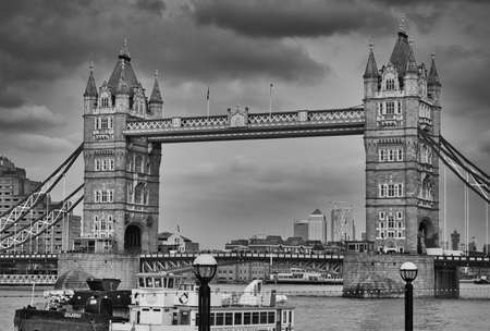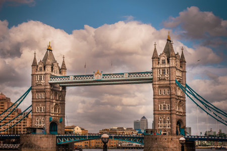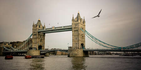 Tower Bridge in London city, United Kingdom with thick clouds on the background. Panorama