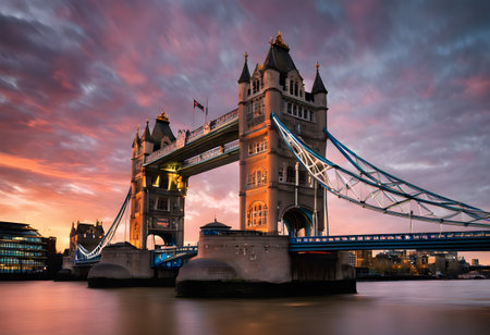 Tower bridge at beautiful sunset. One of the most popular landmark in London, United Kingdom