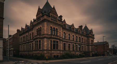 Old Reading Town hall front elevation on dull winters day