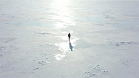 A person stands alone in dense fog, reflecting on lives challenges while looking for a path forward in a silent, unclear landscape.