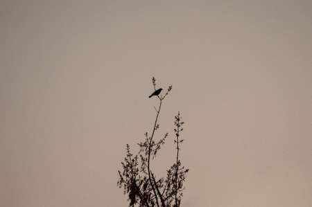 The Crow Perched on The Dry Branch among The White Sky