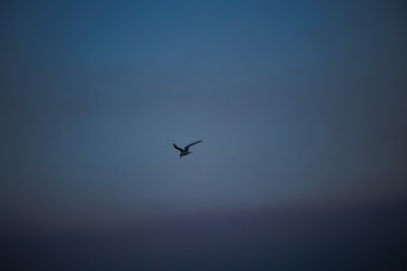 Seagull flying high in the mystic sky
