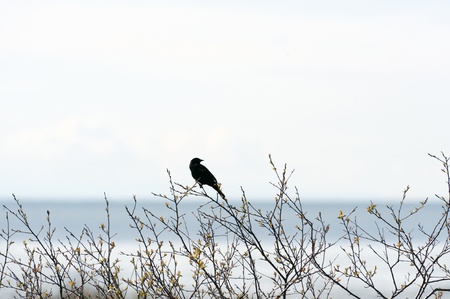 Alone bird, Red-winged Blackbird by the lake