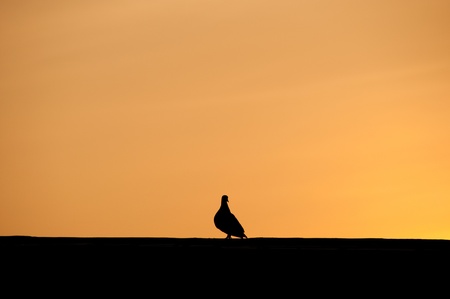 Pigeon is stand on the roof out of food early in the morning of a new day.