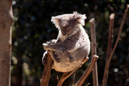 A very sleepy koala at the Queensland Zoo in Australia. These animals are largely sedentary and sleep up to 20 hours a day.