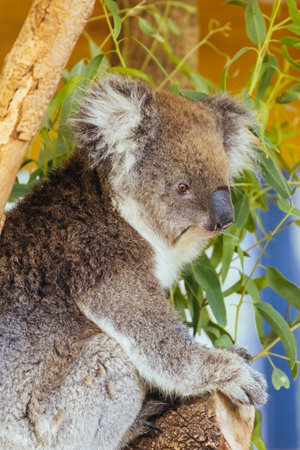 Koala in the wild with gum tree on the Great Ocean Road, Australia. Somewhere near Kennet river. Victoria, Australia.