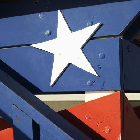 close up view of the Texas Lone Star flag isolating the three separate colors and the single star amongst shadow, high lights and waves
