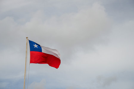 Chilean flag waving against cloudy sky, symbolizing national pride