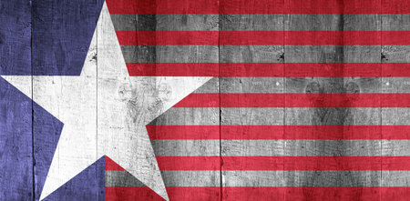 Texas US state national flag on a gray wooden boards background on the day of independence in different colors of blue red and yellow. Political and religious disputes, customs and delivery.