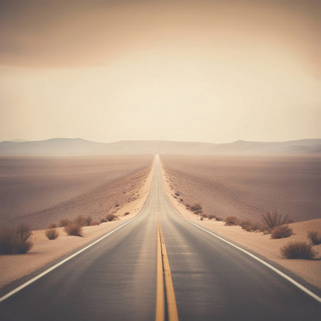 Minimalistic empty highway in desert. Travel concept. Generative AI.