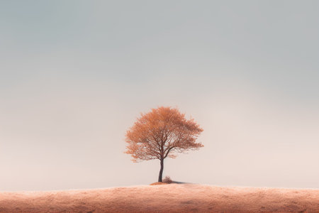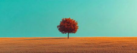 Minimalistic Outdoor Scene Featuring a Solitary Tree Against a Clear Blue Sky. Generative AI. high quality illustration