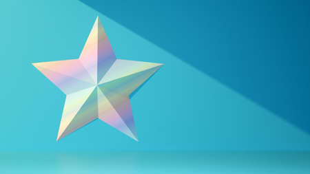 3d render of star icon on colorful background. Star icon isolated on colorful background.