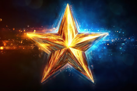 Golden Star on Blue Background. 3D Render. Selective focus.