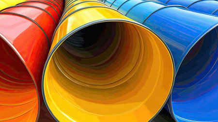 A stunning collection of colorful barrels stacked in an artistic formation, capturing the intricate details and vibrant colors against a rustic backdrop. Perfect for artistic projects.