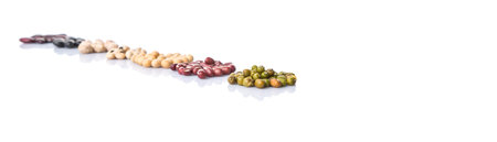 Mixed beans, Different legumes isolated on white background.
