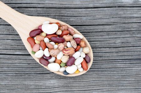A colorful pile of beans on wooden background