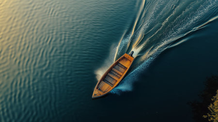 Aerial view of a small boat racing in the sea, travel and vacation concept