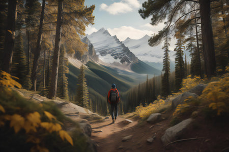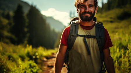 person, hiking through nature with backpack in view, created with generative ai