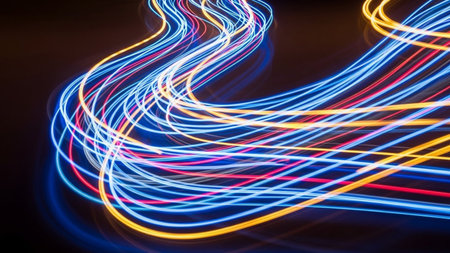 Colorful light streaks create dynamic abstract textures and patterns in long exposure