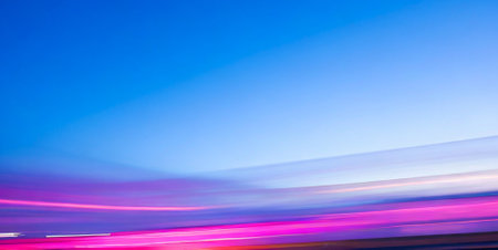 Abstract light trails on a dark background, motion blur, futuristic, digital art, vibrant pink and purple hues, dynamic movement