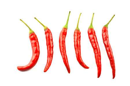 Red chili peppers on a white background.
