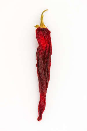 Dried red chili or chilli cayenne pepper isolated on white background cutout.