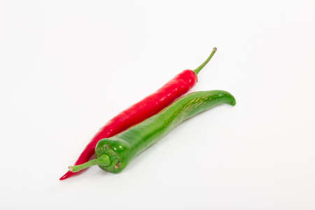 Red and green peppers on a white background