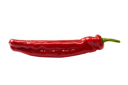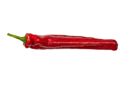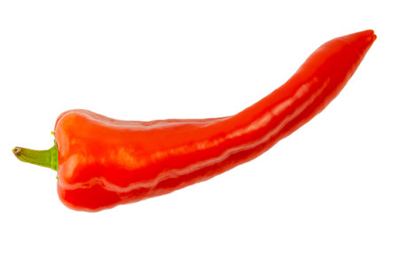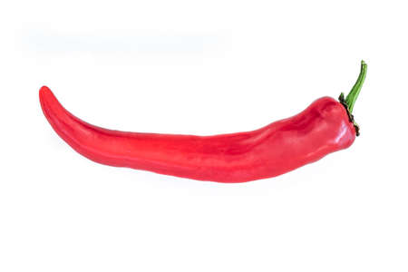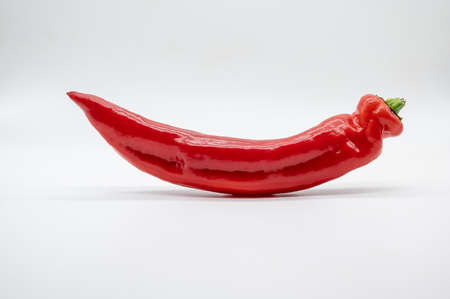 Single long sweet red pepper isolated on white background. Fresh vegetable. Vegetarian food.