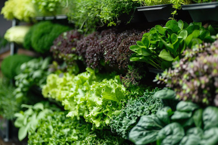 AI Generated. Vertical Farming Display with Fresh Green Vegetables on Wall
