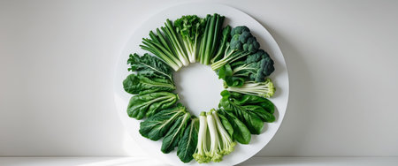 AI Generated. Healthy Green Vegetables Arranged in Circular Layout with Negative Space
