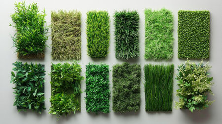 A stunning collection of various green grass and plant textures, ideal for backgrounds and designs that embody a fresh, natural aesthetic. Perfect for eco-friendly projects.