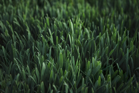 Aerial top-down capture of lush grass with vivid green hues and dense coverage, perfect for nature-themed backdrops
