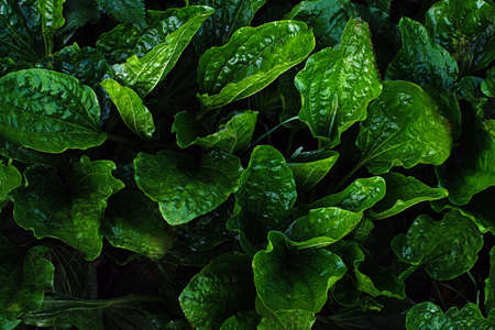 Perfect natural fresh leaves pattern natural background. Dark green moody backdrop for your design. Copy space. Nature wallpaper.