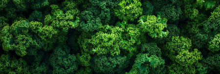 Abundant Fresh Kale Garden Top View, Lush Green Leafy Vegetable Texture, Healthy Eating Concept