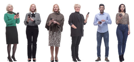 Many people set on isolated background, casual fashion wear, full body length shot, mixed different diversed people, trendy summer collage of happy positive male and female, crisp edges style