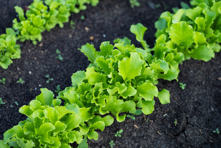 Fresh Green Lettuce Growing in Rich Soil of a Vegetable Garden