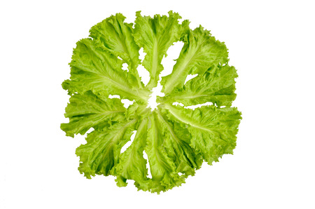 Green salad lettuce fresh leaves, on white background with copy space for text