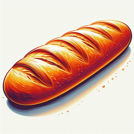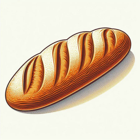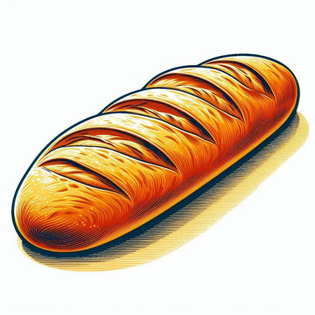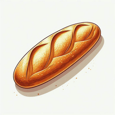 Illustration of a fresh loaf of bread on a white background.